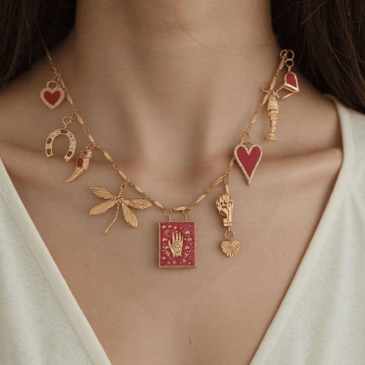 PRE-MADE Handmade Talisman Necklace – Gold & Red Lucky Charms
