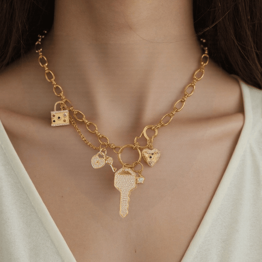 PRE-MADE Golden Key & Lock Charm Necklace – Vintage Romance Pendant