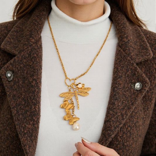 PRE-MADE dragonfly and butterfly pearl Necklace