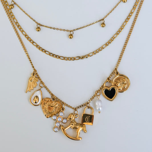 Vintage Charm Necklace - Gold Chain with Floral, Fish & Tea Accents