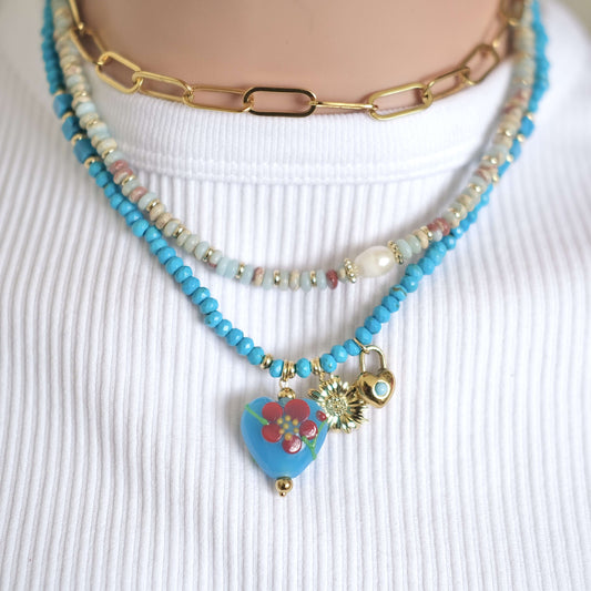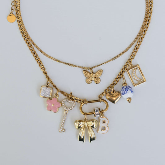 Bow Pink Flower Oval Clasp two layer Chain-customization
