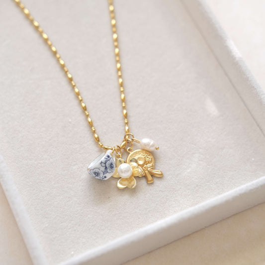 Celestial Charm Necklace - Sun, Moon & Stars Gold Pendant