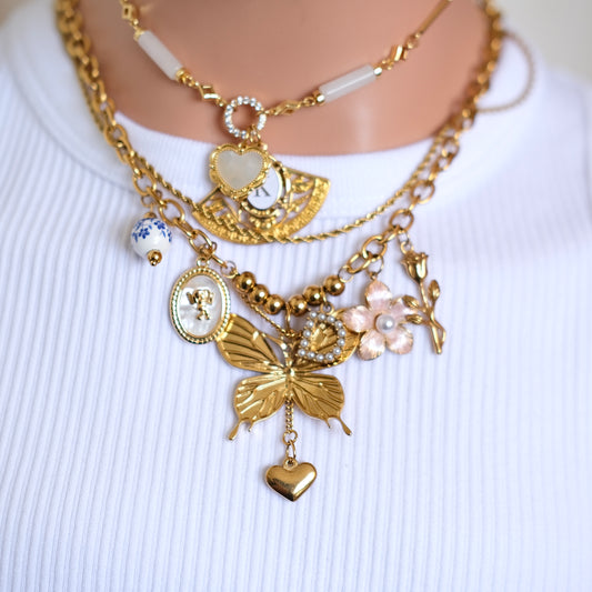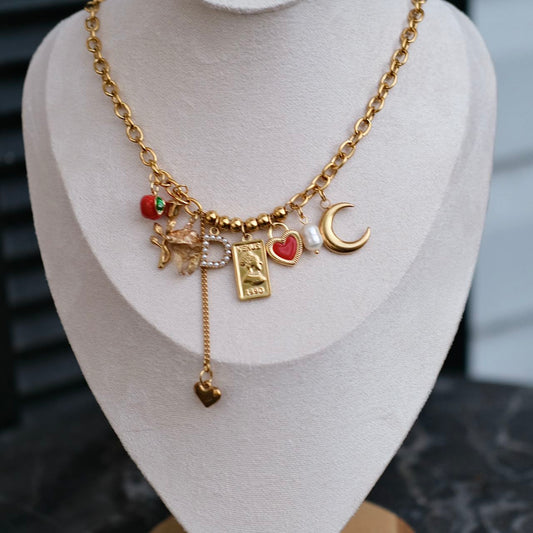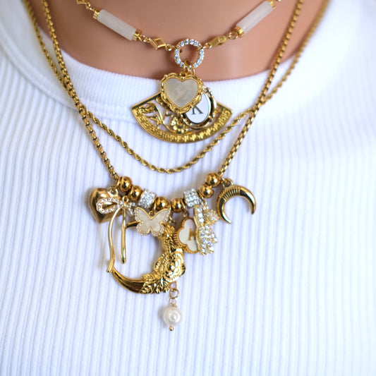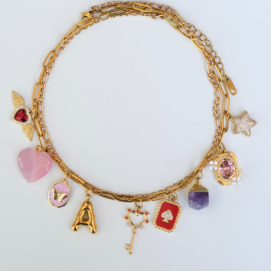 Personalized Gold Heart and Charm Multi-Layer Necklace -customization