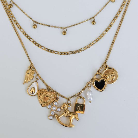 Personalized Initial Charm Triple Chain Necklace-customization