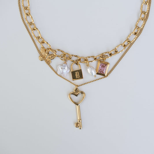 Bee heart Oval Clasp two layer Chain-customization