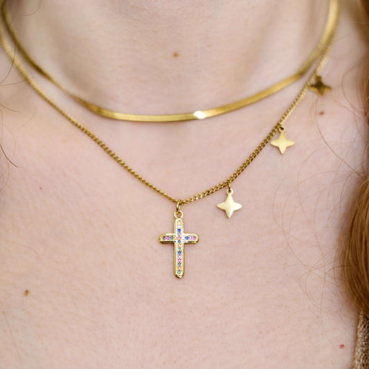 Cross with colorful Zircon charms pendant