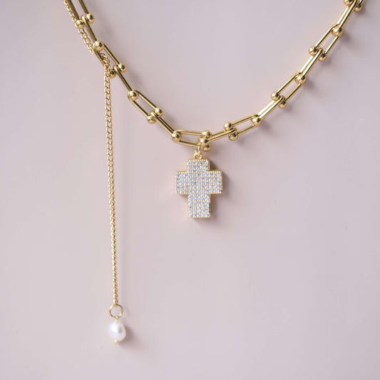 Cubic Pearl Cross charms pendant