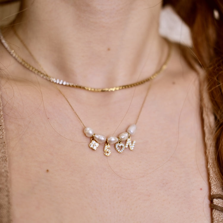 Pearls necklace with Love ,birthstone and Pearls Initial Necklace