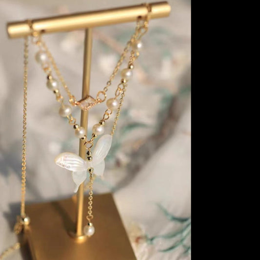 golden butterfly necklace handmade agate cystal beads necklace jewelry