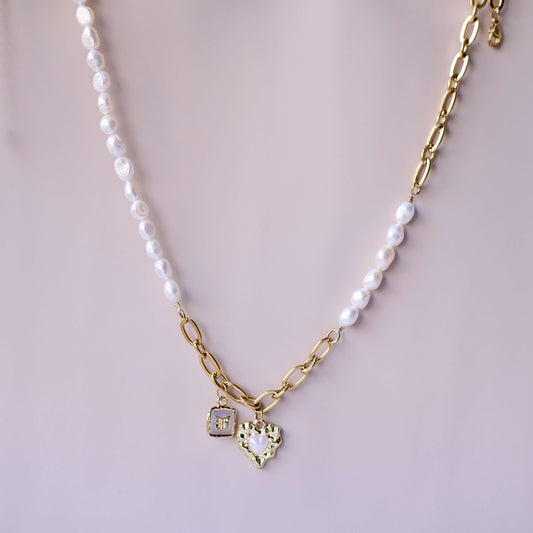 Pearls necklace with Love ,birthstone and Pearls Initial Necklace